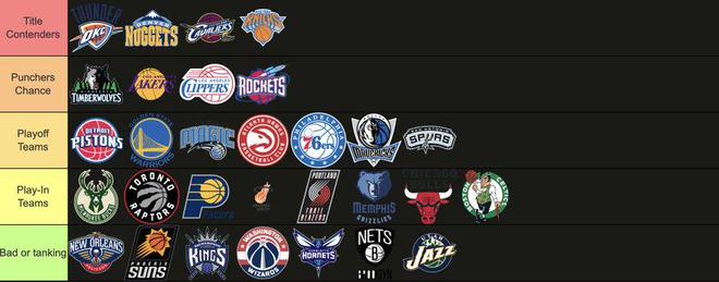 雷速体育9月26日讯 The Athletic专家Esfandiar Baraheni给新赛季球队实力分档,雷霆和掘金在内的四队被分在第一档(冠军竞争者),湖人排在第二档(有微弱机会争冠)。