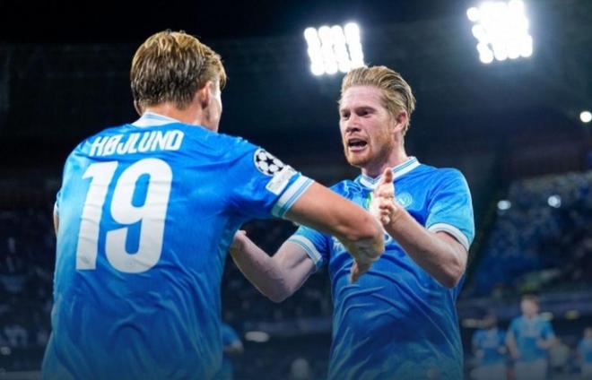 主场作战的那不勒斯在第36分钟取得领先。德布劳内带球反击,随后送出手术刀的直塞,霍依伦单刀破门。第62分钟,葡体依靠点球扳平了比分。第79分钟,德布劳内左路传中,霍依伦头球破门,2-1!